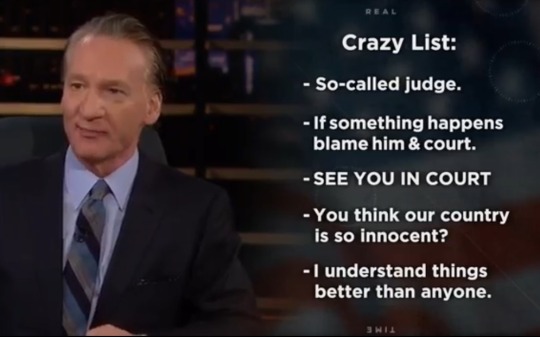 Here’s a screenshot from a recent episode of Real Time with Bill Maher. The bullet points purport to show the “crazy” things President Trump said this past week. Focus on the first bullet point, just to keep things simple. The point I’ll make applies to all of them, but we can simplify by looking at the first one. It says, “So-called judge.”