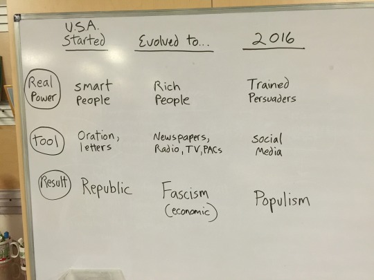 In our new form of government, a trained persuader such as Donald Trump or Bernie Sanders gains popularity on social media and forces the traditional media to fall in line. That form of government looks more like populism. The majority has more control than it did under a republic or under economic fascism.