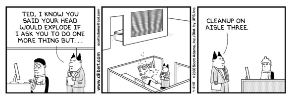 I’ve created 365 Dilbert comics a year for 19 years. I remembered all of them for about the first four years. Now it is impossible. So I sit there for a few minutes rummaging through my memories and finding nothing but spider webs. At this point I will digress and give you my untested theory about creativity:
