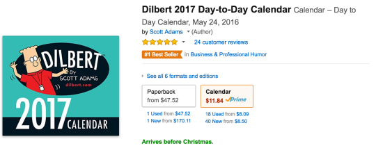 The perfect gift for a reader of this blog is the Dilbert calendar, the #1 Best Seller on Amazon. Get it here: