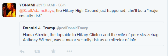 And how about the word “major” in that sentence. Yup, an anchor. Trump doesn’t need you to accept that the risk is major. But setting that anchor in your mind probably makes you think there is SOME security risk with Clinton that is unique. And even the smallest extra risk in this sort of situation means we all die.