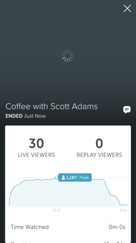 A high viewer count is what makes a Periscope session look appealing to other viewers. The sessions with a lot of viewers get featured and attract even more viewers to see what is happening. Whatever suppressed my viewer count had the effect of reducing the number of new people coming to see me.