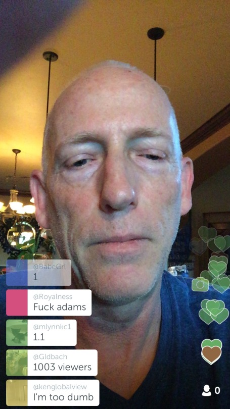 I was just on Periscope, the streaming app owned by Twitter. The running count for number of live followers on my session dropped from over a thousand to zero for no obvious reason, even though plenty of people were still on and interacting with me. At a count of over a thousand viewers I would have been close to the #1 stream on the app at that moment.